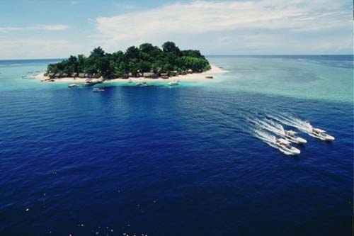 Located in the Celebes Sea, Sipadan is renowned as one of the top five dive sites in the world. A rainforest covered tropical island that rises just 700 meters from the ocean floor, the waters around Sipadan are flush with sea life. Within about eight meters of the beach the sea floor drops off to 600 meters, creating a meeting point for coral and deep water creatures. The island is also home to the eerie turtle grave yard – a network of caves, littered with the empty shells of these great seafaring reptiles.